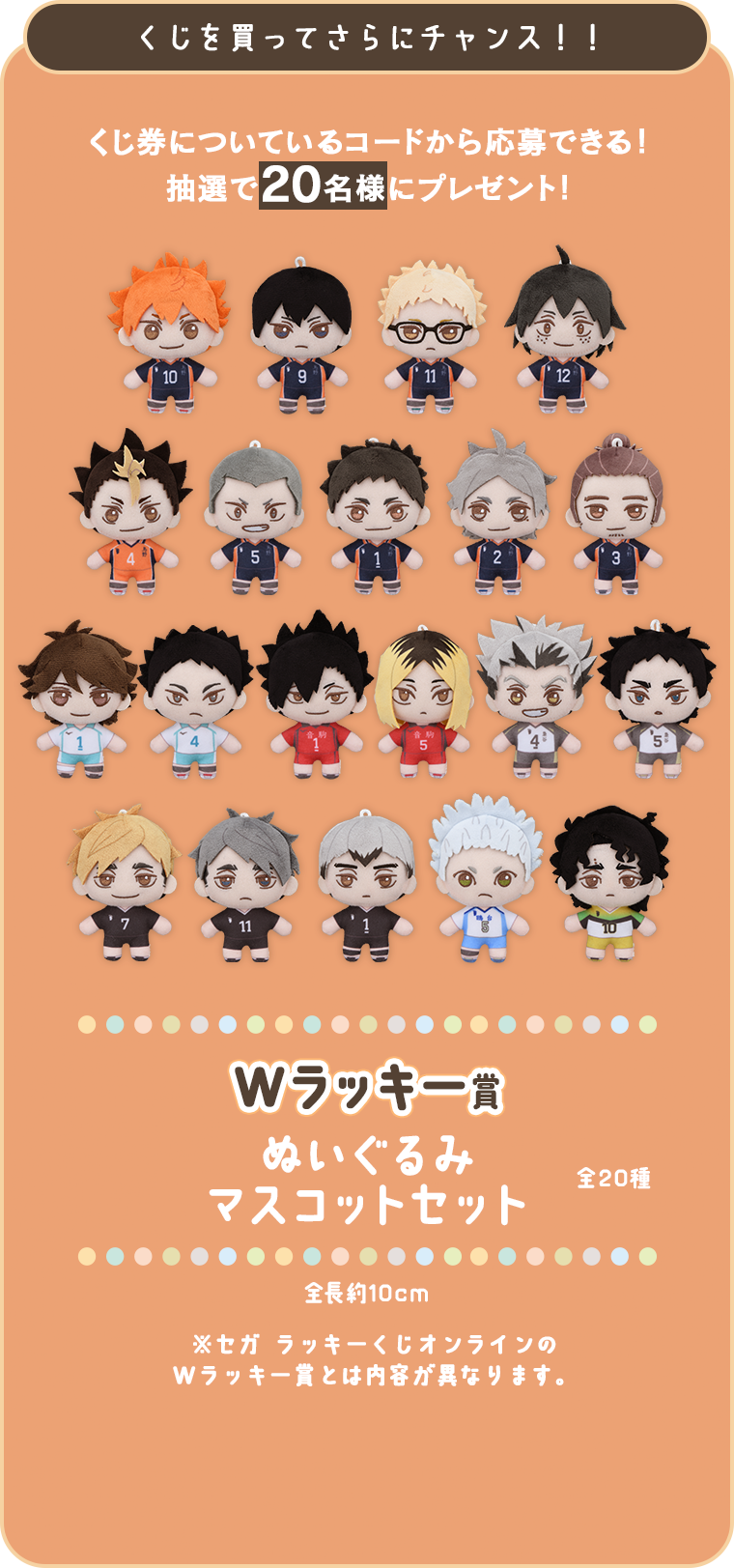 Wラッキー賞 ぬいぐるみマスコットセット全20種 全長約10cm ダブルラッキー賞に応募する
