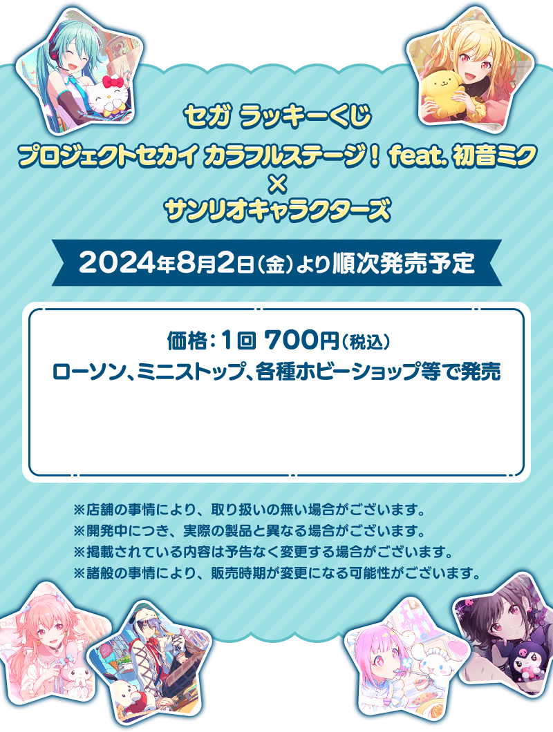 Wラッキー賞 キューブクッション全1種 セガ ラッキーくじ プロジェクトセカイ カラフルステージ! feat. 初音ミク×サンリオキャラクターズダブルラッキー賞に応募する
